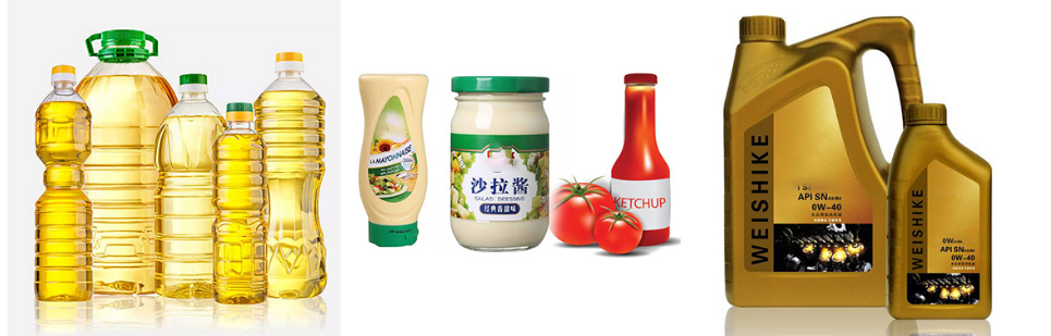 Olio commestibile (Sesamo, Oliva, Arachidi / Miscela .etc) Ketchup, Maionese, Salsa di peperoncino ecc. Olio lubrificante + Solventi speciali .etc
